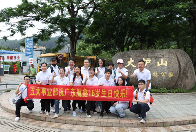 为提升员工的精神文化生活,加深相互认识了解,加强团队凝聚力, 体现公司“一个团队、一种思想,一个目标、一致行动、一个成果”的团队精神。2022年6月12日,公司十六周年生日之际举办了广东航鑫16周年庆主题活动-火炉山森林公园登山团体挑战赛。